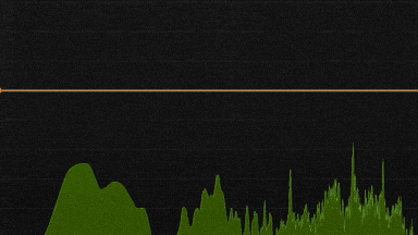 This visual shows full-spectrum sound frequencies in a typical, unfiltered clip of popular music.